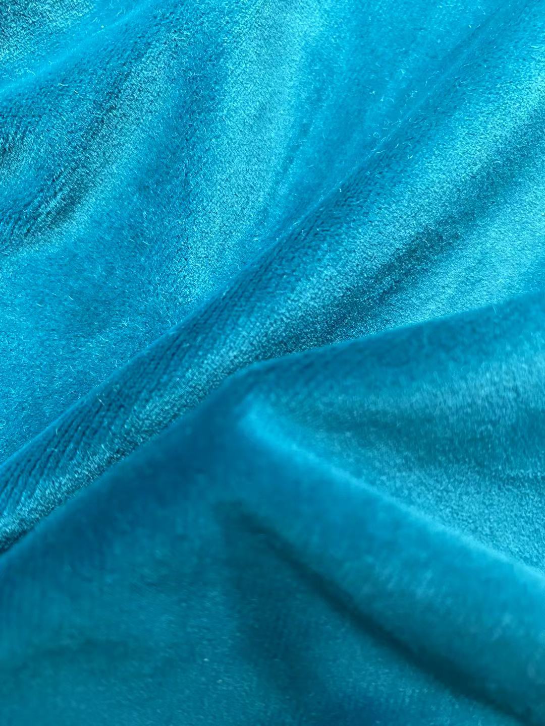 পলিয়েস্টার ভেলভেট ফ্যাব্রিক হল এক ধরনের সিন্থেটিক ভেলভেট ফ্যাব্রিক যা পলিয়েস্টার ফাইবার থেকে তৈরি। পলিয়েস্টার মখমল এবং অন্যান্য ধরণের মখমলের মধ্যে প্রধান পার্থক্যগুলির মধ্যে একটি হল উত্পাদন প্রক্রিয়া। পলিয়েস্টার মখমল সাধারণত একটি মেশিন বুনন প্রক্রিয়া ব্যবহার করে তৈরি করা হয়, যা ফ্যাব্রিকের টেক্সচার এবং প্যাটার্নে বৃহত্তর সামঞ্জস্যের জন্য অনুমতি দেয়।